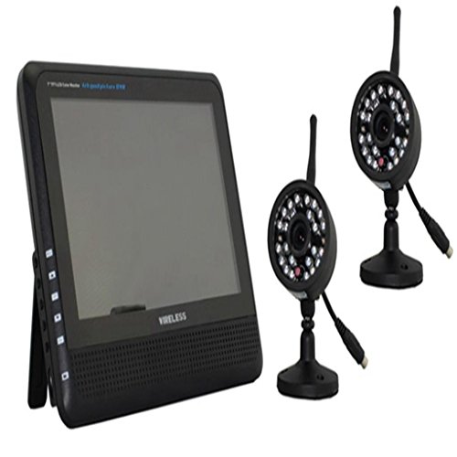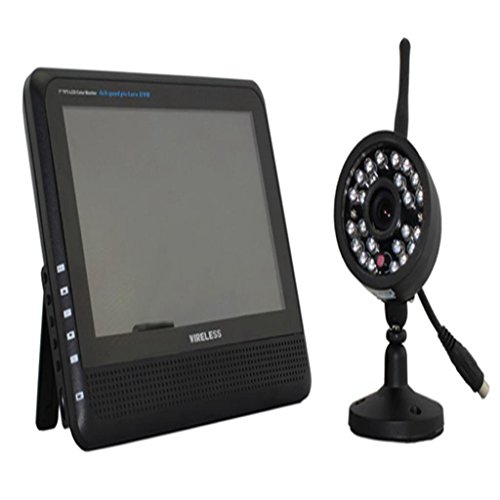 -. Feature : 4CH digital wireless camera & DVR system,Simple installation- no cables required !Total digital wireless , no interferences , no P.R.Ivacy leak / 7inch LCD monitor with integrated video recorder,Support up to 32GB SD card and external,Support 4 cameras/ 24hours/7days non-stop overwrite recording / Long-distance transmission:Up to 200-300m in open air;Day and night monitoring with clear images for 24 hours / Weather proof outdoor cameras with 300m/1000ft transmission open range / Package Content: 1 * 7" LCD Monitor , 4 * Cameras, 5 * 2.4G Antenna, 1 * TV Output Cable, 5 * DC 5V Power Adapter, 4 * 360° Fixed Bracket