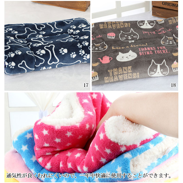 | やわらかで優しい肌触りのペット用毛布です。しっかりとした厚みがあるので寒い日も暖か♪やさしい温もりと、心地よい肌触りが人気のpet用品を是非一度お試し下さい。 | |