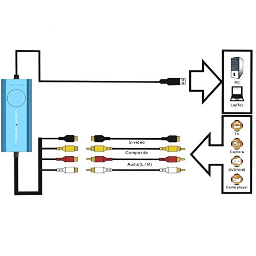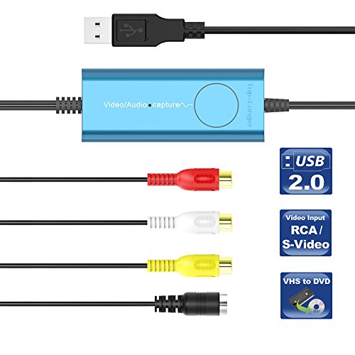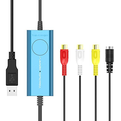 Top-Longer USB Video Capture Card ,VHS to DVD, Digitise Video, Analog to Digital Recorder, RCA Composite, S-Video Win 10 / MAC -Blue