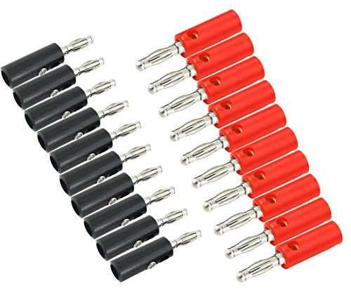 -. Feature : 10 pairs of 4mm banana speaker cable plugs ( 10 x red and 10 x black ) / The banana plugs will connect from 2mm up to 5mm diameter speaker wire / Material: plastic and metal / Total Size : 40 x 8.5mm/ 1.6" x 0.33" (L*Max.D) / Screw connector fitting - no soldering required