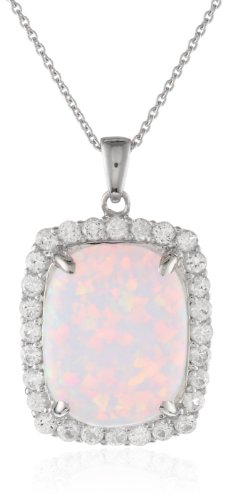 Sterling Silver Cushion Simulated Opal with Created White Sapphire Pendant Necklace, 18"