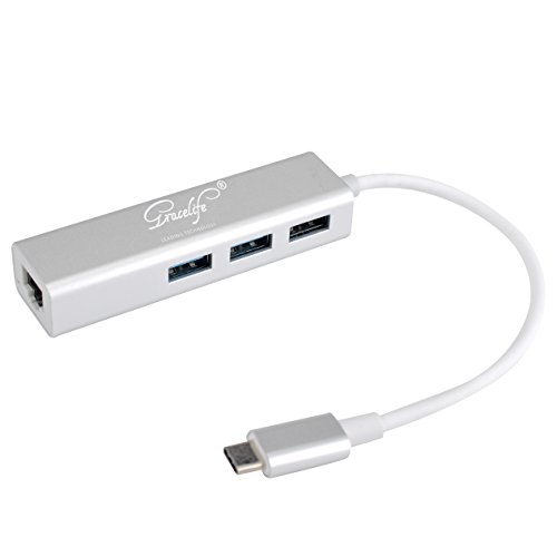 Gracelife Premium USB C Hub to 3-Port USB 3.0 Hub with Ethernet Adapter for USB Type-C Devices Including the new MacBook 2016, ChromeBook Pixel and More (Silver Aluminum)