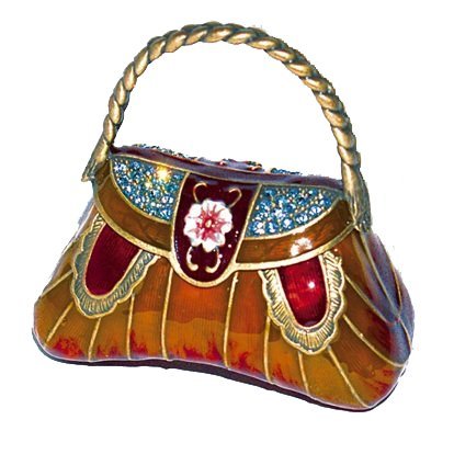 Orange Purse Pewter Figurine Box - Swarovski Crystals, Jewelry Box, Keepsake Collectible