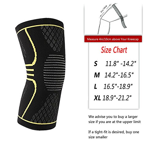 THE RIGHT FIT - Use the sizing guidelines to find the correct fit for your knees. Measure 4” above knee circumference and choose between high compression or moderate compression.