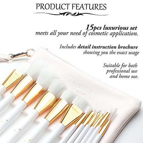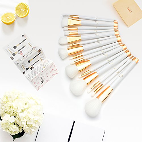 GORGEOUS GIFT WITH A PORTABLE WHITE COSMETIC BAG: 15 in 1 professional brushes set has perfect design as a pretty gift for both personal use and professional use. All these cute 15pcs makeup brushes are packed in a portable, cute & multifunctional cosmetic zipper bag for protecting, storing, or carrying to anywhere.