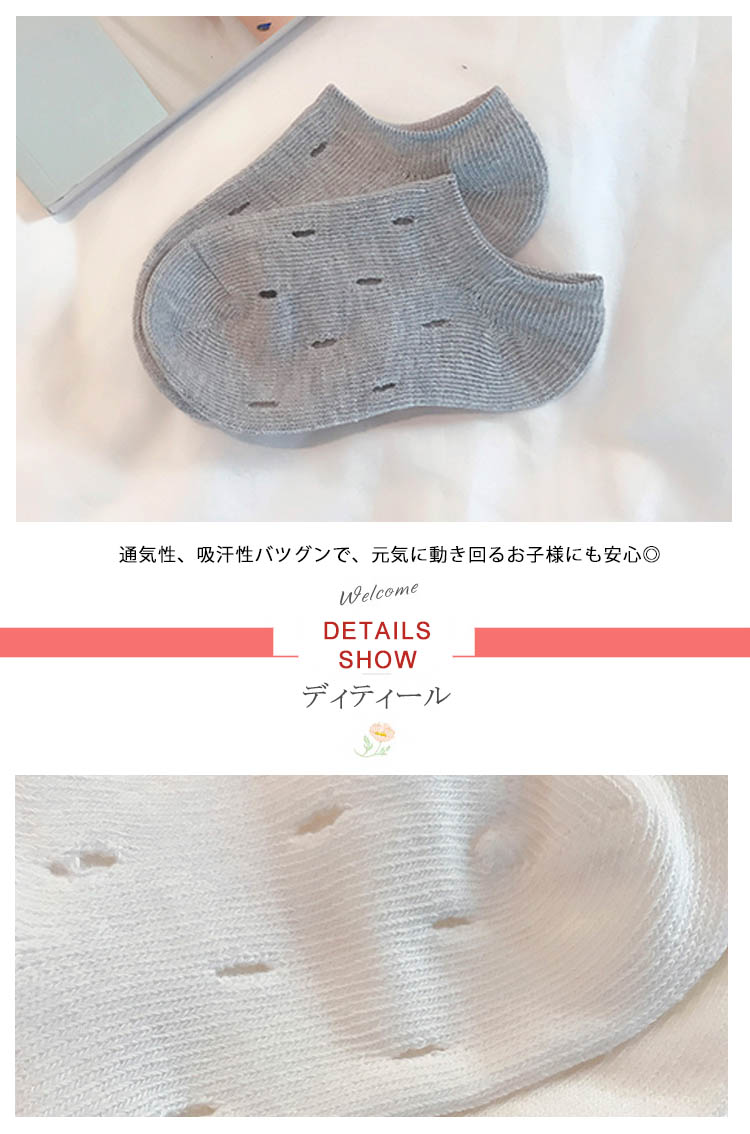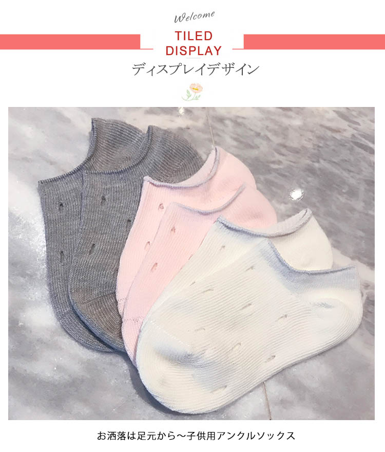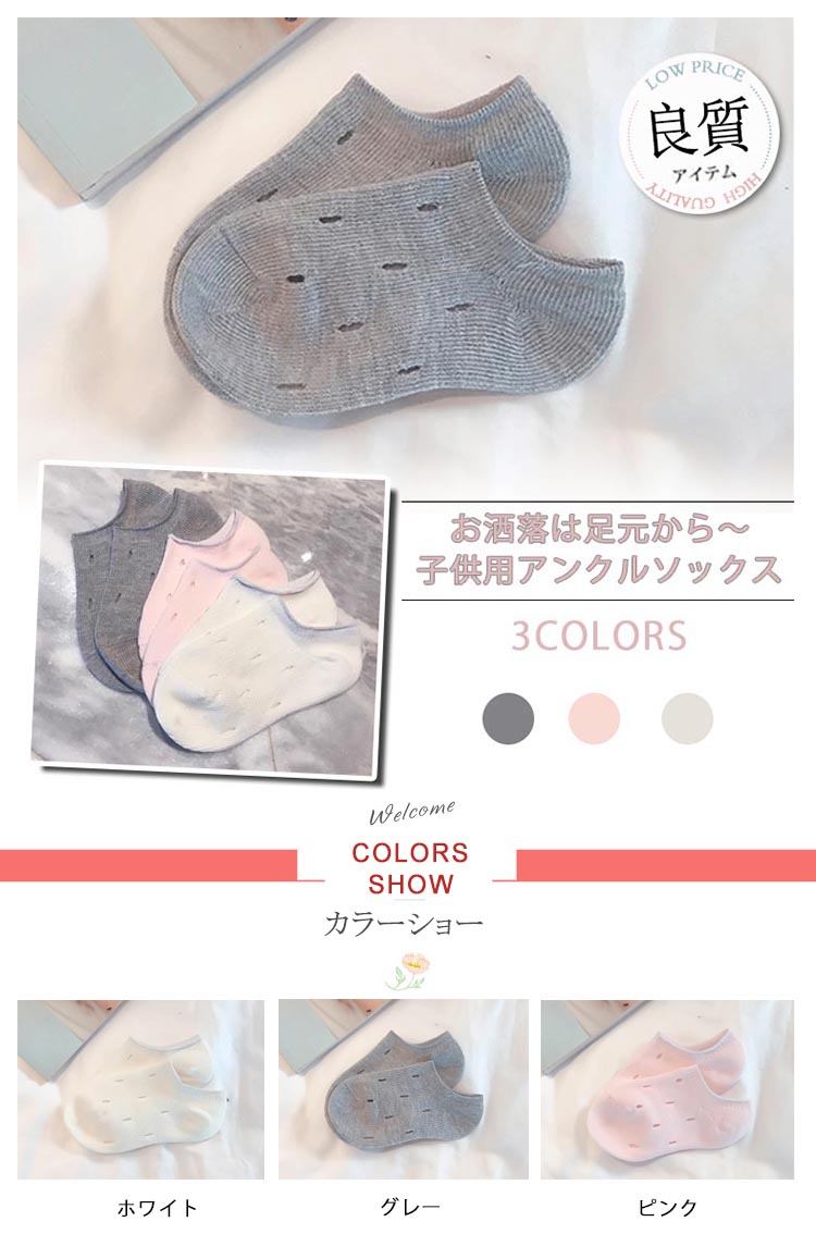 | お洒落は足元から?子供用アンクルソックスロッカースニーカーと相性抜群、足首を綺麗に魅せる お洒落決まり足に心地よく馴染む上質素材を使用し、履き口は程よいフィット感通気性、吸汗性バツグンで、元気に動き回るお子様にも安心◎ | |