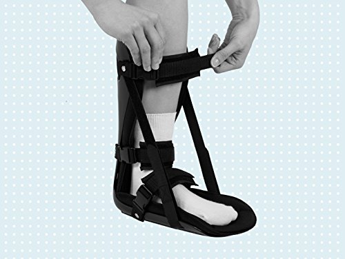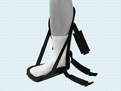 Studio : TLC Publisher : TLC Binding : Health and Beauty Product Description Comfortable, durable, versatile option for patients suffering with the discomfort caused by Plantar Fasciitis. Plantar fasciitis is a frequent cause of heel pain in athletes, as well as in persons who are not involved in sports. Stretching, strengthening, correction of training errors and orthotics are essential components in any treatment program. For patients who do not respond to these interventions, posterior night splints may reduce the need for invasive therapies such as corticosteroid injections and surgery. INDICATIONS FOR USE: Plantar Fasciitis, Achilles Tendonitis, Tendonosis, Other lower extremity overuse injuries. PRODUCT HIGHLIGHTS: Adjustable bilateral dorsi-flexion straps allows patient to apply consistent stretch. Soft foam inner layer and padded straps enhance patient comfort while sleeping. Lightweight, sturdy and breathable shell. Fits right or left foot. Size : Male Shoe Size: Small - up to 7, Medium - 7 ½ - 10, Large - 10 ½ . Female Shoe Size: Small - up to 7 ½, Medium - 8 - 10, Large - 11 . 0