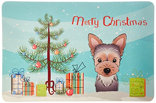 Caroline's Treasures BB1604CMT Christmas Tree and Yorkie Puppy Kitchen or Bath Mat, 20 by 30", Multicolor