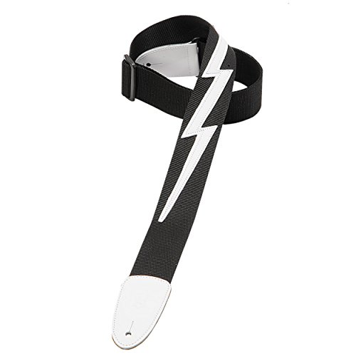 [Product Information]- 2 inch soft-hand polypropylene guitar strap with leather lightning bolt applique.
