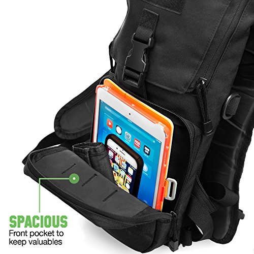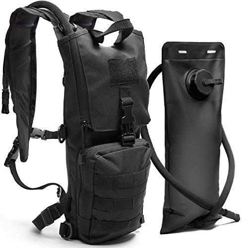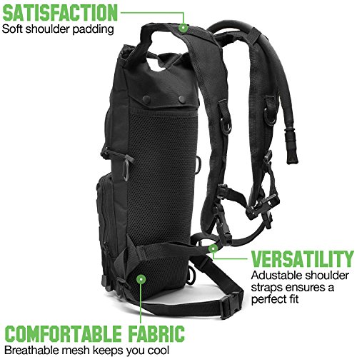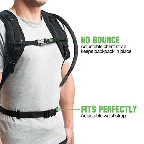 Black Tactical Hydration Pack with 3L Water Bladder Fits Men, Women, Kids - Military Style Daypack Backpack for Hiking, Running, Camping, Biking, Cycling, Walking, & All Outdoor Activities
