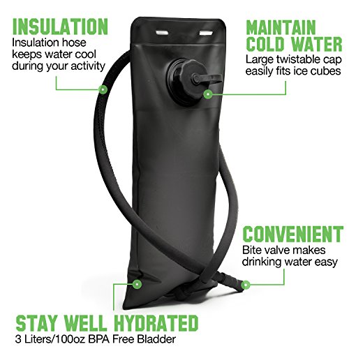 STAY HYDRATED. 3 Liter replaceable water bladder bag included. No need to buy a reservoir or bladder, our backpacks come with a ready to go bladder to keep you well hydrated throughout your expedition. The bladder also has a wide screw cap so you can add ice cubes to keep your water extra cool.