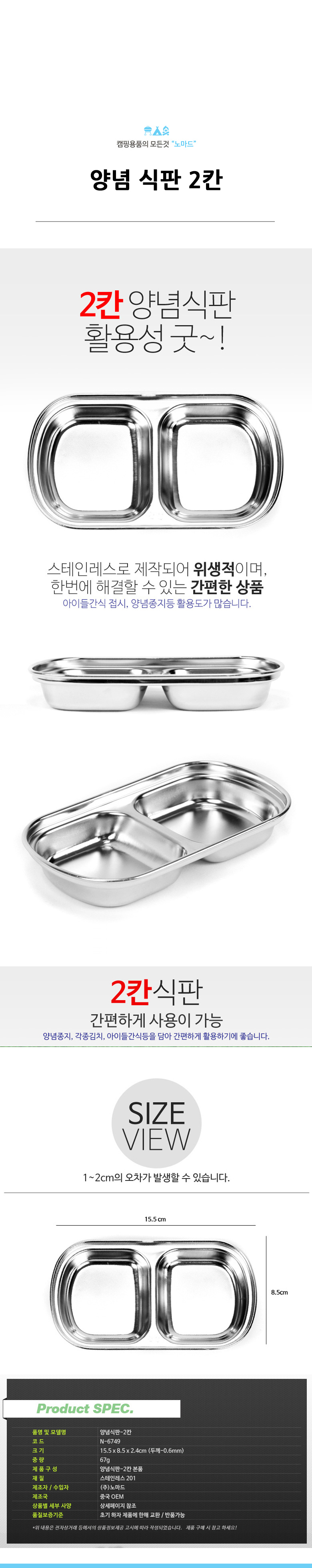 • 품명 양념식판 2칸 캠핑식기