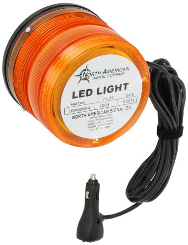 North American Signal LEDQ375MX-A Class 1 LED High Power Warning Light with Magnetic Mount, 12/24V, 1.6A Current, Amber