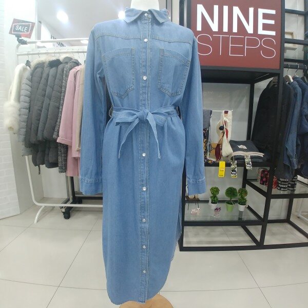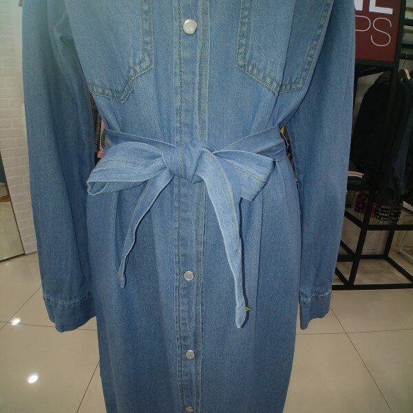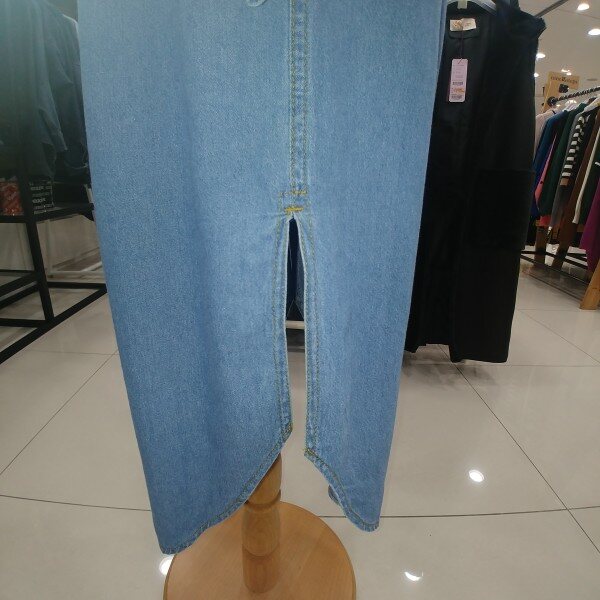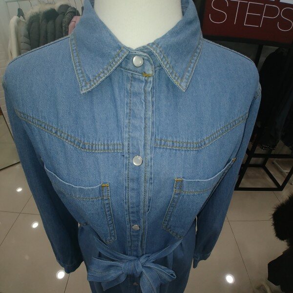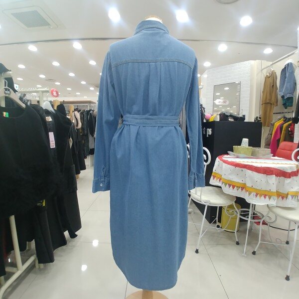 청벨트 원피스형 자켓 밝은 연청색의 원피스로 벨트가 있어 라인잡아주는 제품으로 옆트임이 길게 있어 활동성도 좋은 제품입니다