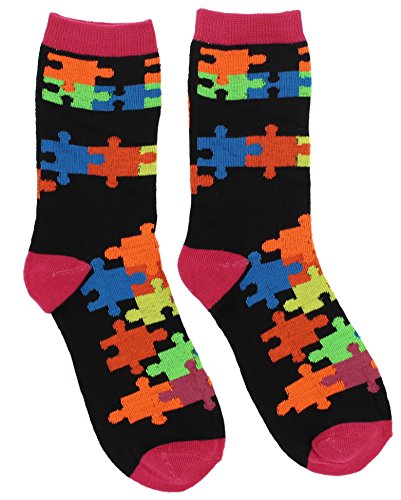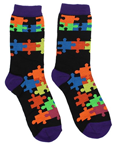 -. Feature : Women's Colorful Jigsaw Puzzle Piece Crew Socks / US Women's sock size 9-11, fits US women's shoe size 4-10 / Raise awareness for Autism / For the puzzle fan too / Machine washable