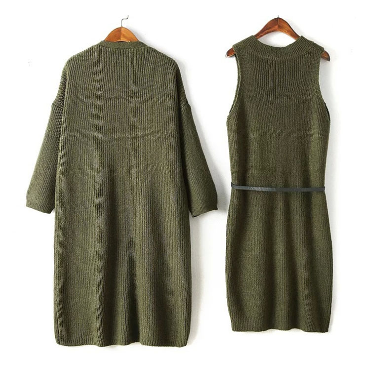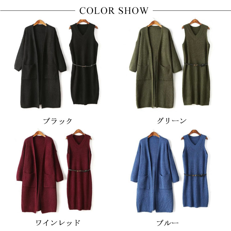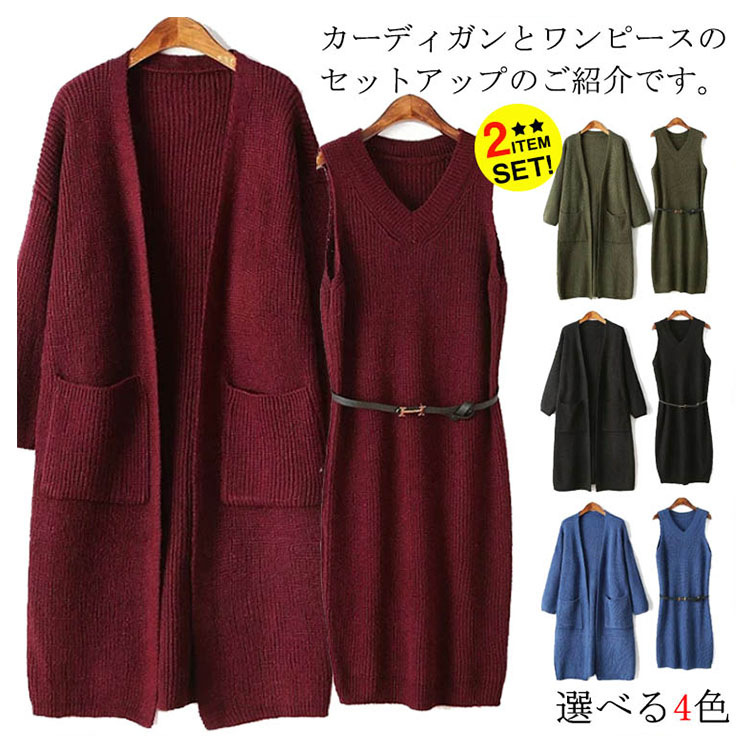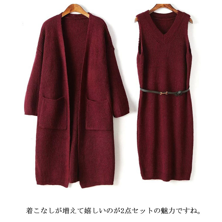 | カーディガンとワンピースのセットアップのご紹介です。着こなしが増えて嬉しいのが2点セットの魅力ですね。シンプルなので、ボトムスは何でも合わせやすいです。1枚でさらりと着こなすだけで落ち着いた大人カジュアルな着こなしに。 | |