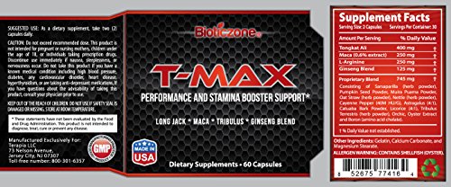 - Feature : TMax boosts testosterone, elevates your mood & leads to a much better healthier, satisfying sex life / Significant improvement in sperm quality, male fertility, enhanced libido, sexual drive, pleasure & increased semen volume / TMAX Allows your body to naturally produce testosterone at a steadily increasing rate well above your natural level / TMAX contains powerful aphrodisiacs proven to increase sexual stamina, energy & give a positive sense of well being / TMAX 21 DAY MONEY BACK GUARANTEE - If you are not satisfied we will issue a refund & you keep the product