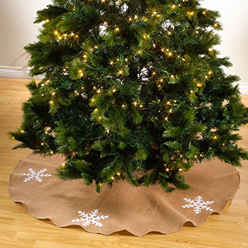 Lumi Snowflake Burlap Holiday Christmas Tree Skirt, Stocking (53" Tree Skirt)