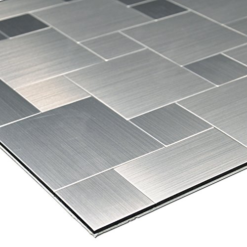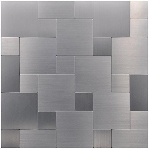 Art3d 12" X 12" Peel & Stick Metal Decorative Wall Tile, Puzzle Brush Silver Square