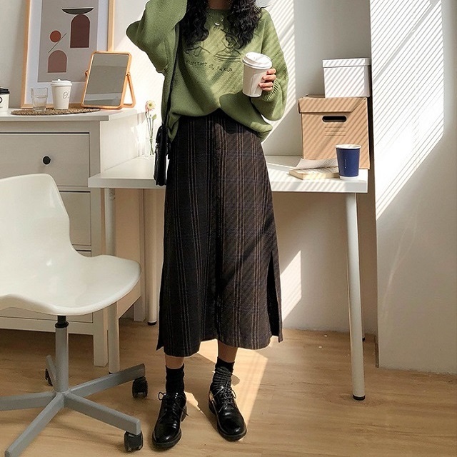 Aラインのミモレ丈、サイドには深めに入ったスリットで大人の女性にぴったりの1枚です。