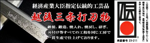 길겸 경제 산업 대신 지정 전통 적 공예품 에치고3 조타칼날길 겸청지 강1 호본직(그 일에 전문적인 직업인)용 물오징어《사키》부엌칼135mm W물소 사양