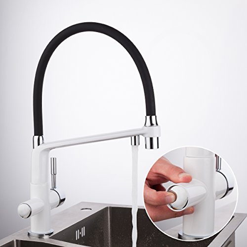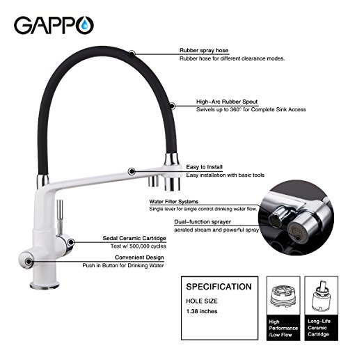 GAPPO Commercial 3 in 1 Pull Out Kitchen Faucet, Dual Handle RO Kitchen Sink Faucets with Pull Down Sprayer White