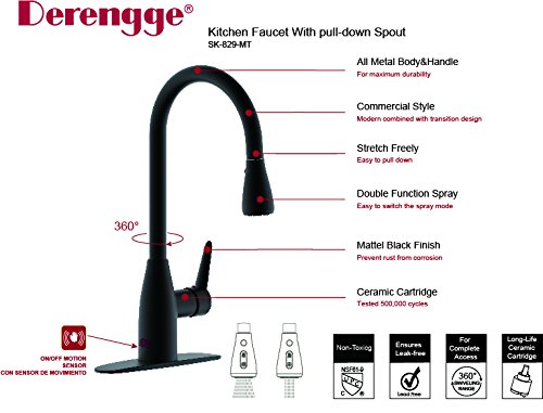 Derengge SK-829-MT Touchless Single Handle Pull Down Kitchen Faucet with Deck Plate,Meets cUPC NSF AB1953 Lead Free, Matte Black