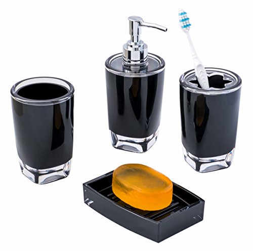 The set includes 1 tumbler, 1 toothbrush holder, 1 soap dispenser and 1 soap dish