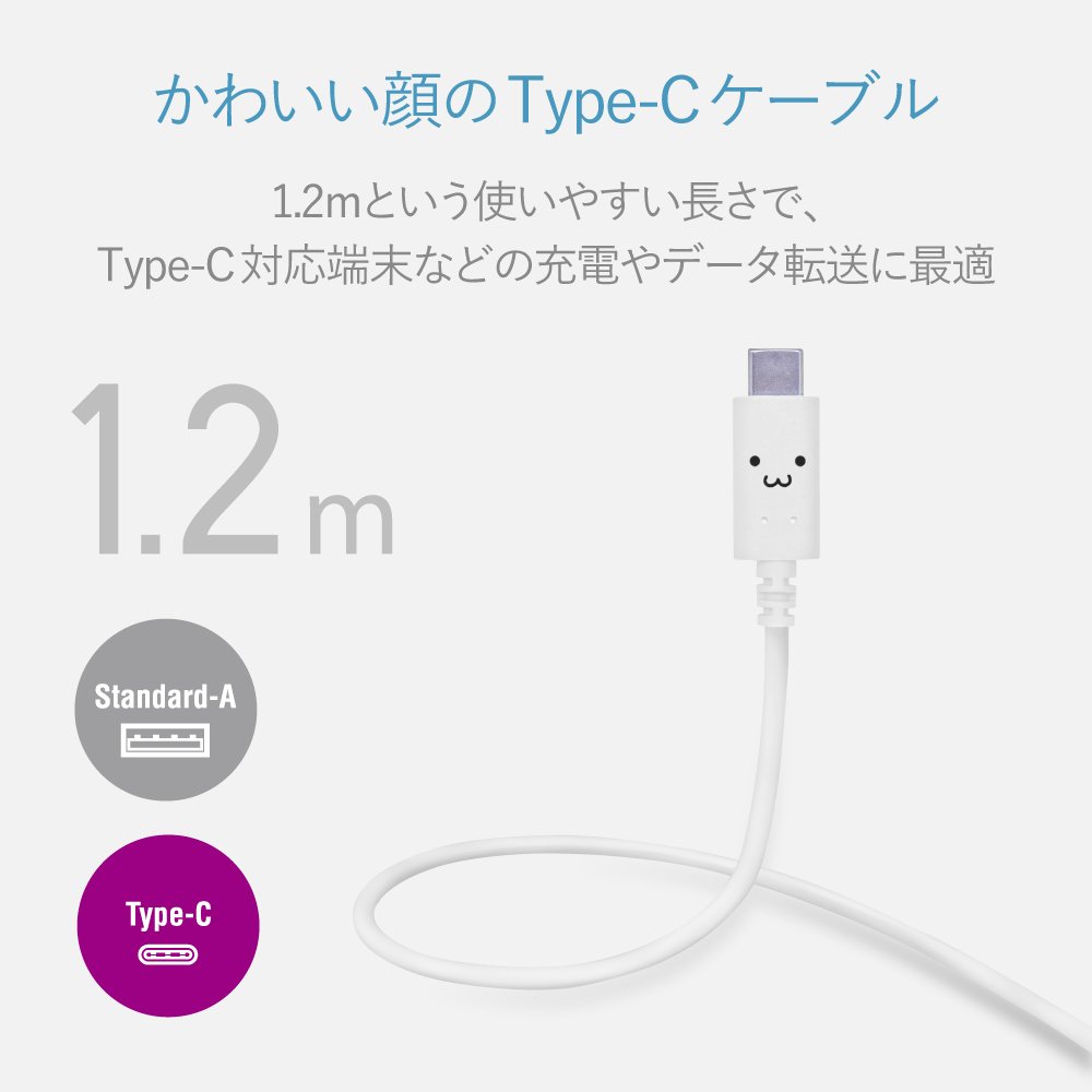 ■ It is a USB 2.0 cable that can connect a smartphone or tablet equipped with USB Type-C to a PC, a charger, a mobile battery, etc. with USB Standard-A, to charge and transfer data.