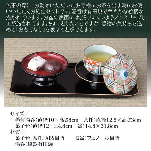 ●材質:菓子台、茶托/ABS樹脂 お盆/フェノール樹脂 湯呑/磁器有田焼