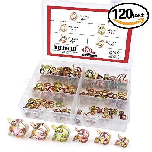 Hilitchi 120 Pcs Spring Band Type Action Fuel / Silicone Vacuum Hose Pipe Clamp Low Pressure Air Clip Clamp (10 x 7mm 10mm 11mm 14mm 16mm 17mm)