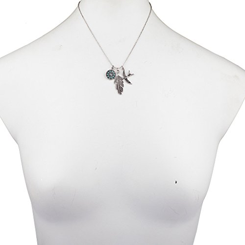 -. Title : Lux Accessories Synthetic Turquoise Tribal Metal Leaf Bird Dove Charm Pendant Necklace