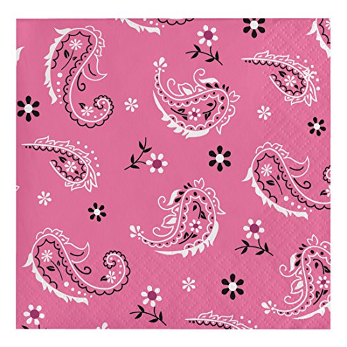 Creative Converting 317378 16 Count Paper Beverage Napkins, Pink Bandana Cowgirl