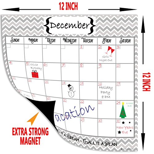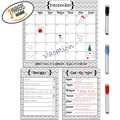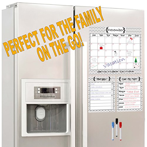 PERFECT SIZE - Our Modern Design Magnetic Note Board doesn’t take over your whole Fridge. Calendar is 12 in. x 12 in., Meal Planner and Daily Chore Chart are 6 in. x 9 in. Most other Fridge Calendars on the Market are too wide for a Double Door Refrigerator. Ours Fits perfectly!