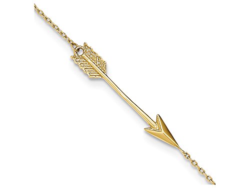 The impressing 9 Inch 14k Polished Arrow W/1 In Ext Anklet, crafted in 14 kt Yellow Gold . This style measures 9.00 Inches long. GIFT CARD OPTION WILL NOT BE AVAILABLE FOR THIS ITEM! UPC Code: 191320005452.
