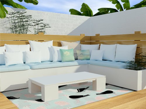 Kess InHouse Michelle Drew "Seagulls and Shells" Indoor/Outdoor Floor Mat, 4-Feet by 5-Feet