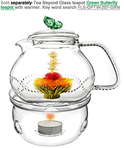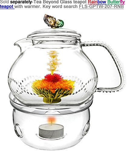 Designed by Jane London, owner of Tea Beyond. Beautiful Pink butterfly on top means change to be better. The water wave crystal-like dots on the teapot body and handle represents liquid tea drops-clean and beautiful. Tea Beyond is inspired by Jane's personal story-She simply wanted to improve her health condition, but couldn't find good quality tea in the US. So Jane created Tea Beyond to share her passion and knowledge about tea and tea-wares. Drinking tea often will make you look better, feel more energetic and live happier. Jane really hopes this teapot does the magic, like the transformation of butterfly, in everyone's life, and brings you positive changes, thus a happier and healthier life. Handle has anti-slip feature. Non Drip design at the spout. Hand blown heat resistant glass. Dish-washer top rack or hand clean. Microwave safe. Handle with care.