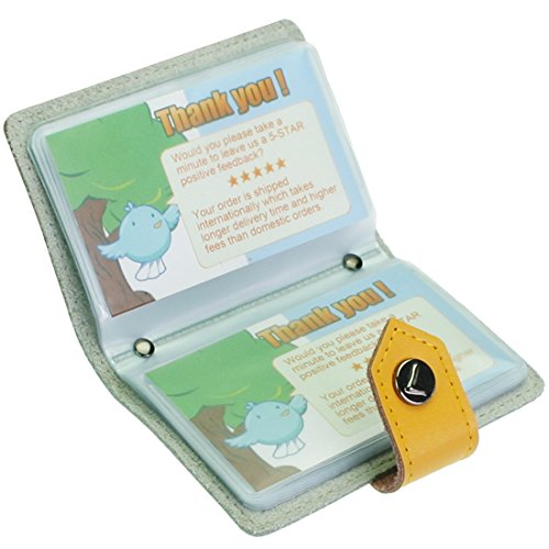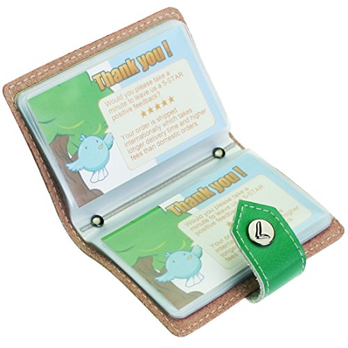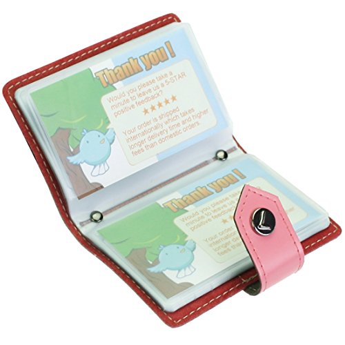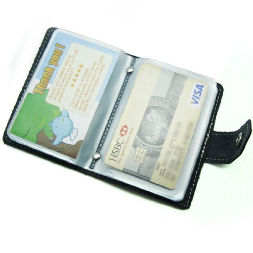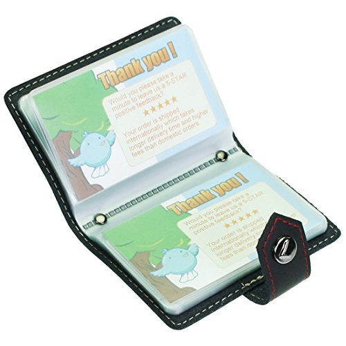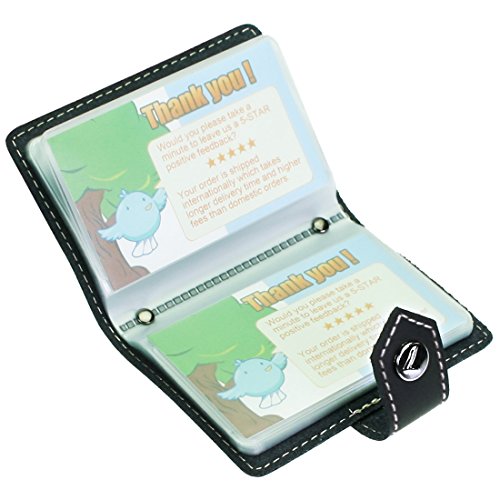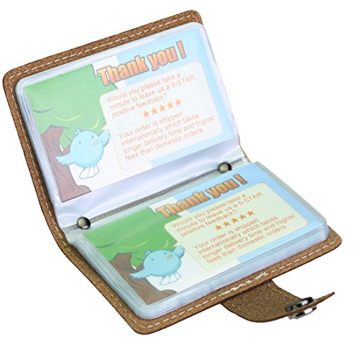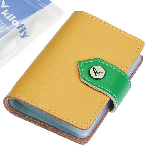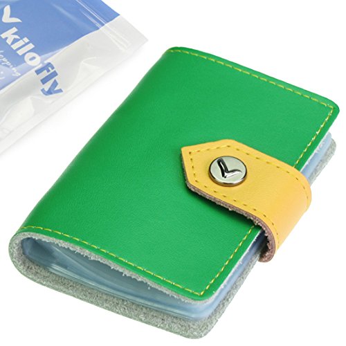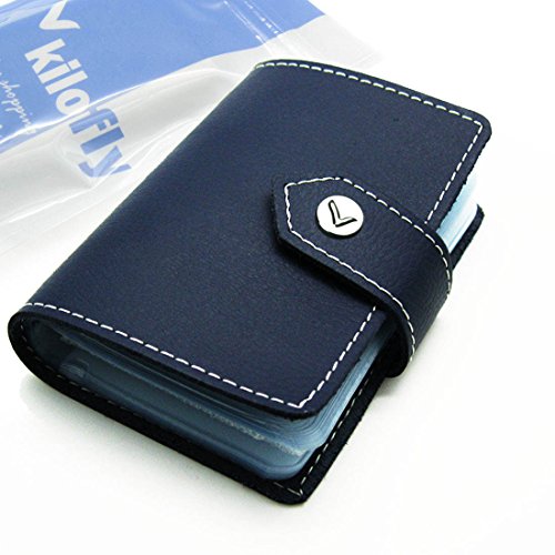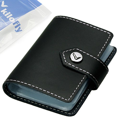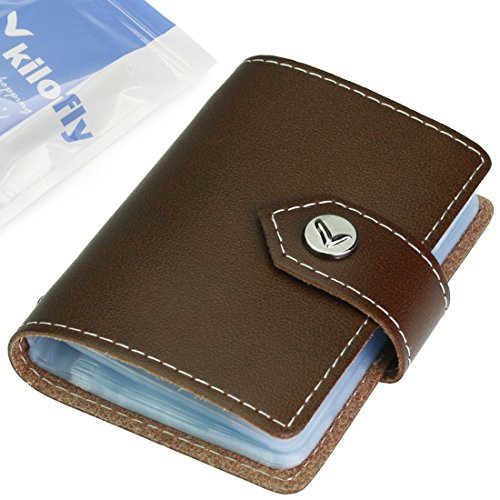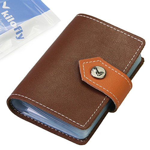 - Feature : Made of soft, durable leather / Book style with kilofly metal snap button closure / 26 see-through card pockets - Provides ample room to store your credit cards, business cards, and more / Can store 20 credit cards or 52 business cards of standard size and thickness / Size: 10 x 7 x 1.5 cm / 4.0 x 2.8 x 0.6 inch (L x W x H); AND comes with a kilofly mini Gift-for-You Card - Ideal for dropping a few words for that special someone