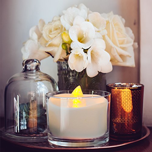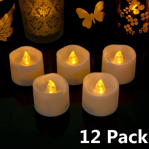 LED Tea Light Candles 12 Pack, Realistic Flickering Flameless LED Candle Set, Battery Votive Electric Candle in Amber Yellow, Reusable Fake Candles for Party, Wedding, Birthday, Home Decoration