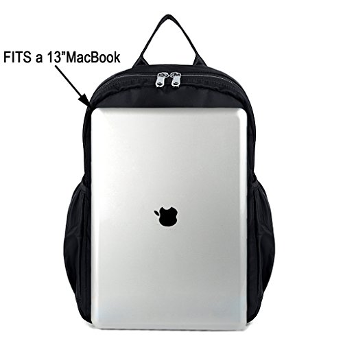 EXTREMELY PRACTICAL - Comfortably holds a 13.3" Macbook Pro, tablet or a LAPTOP 14" and under. Pockets can hold your Smartphone/clothes/books/wallet/umbrella or water bottle and other essential items.