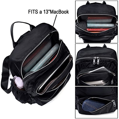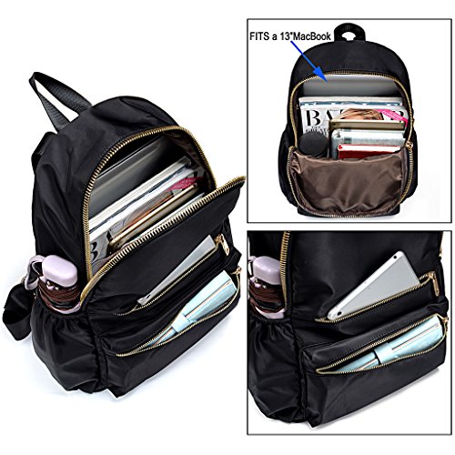 LARGE CAPACITY - Roomy space with multi large zipper sections, 2 front zipper pocket, 2 open side pockets and 1 back zipper pockets. Middle zipper section contains 2 open pockets. Main zipper section contains 13.3" Macbook compartment. Back zipper pocket can hold a 5.5" Phone.