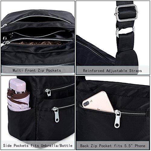 GROSSE KAPAZITAT - Geraumiger Raum mit 2 grossen Reissverschluss-Abschnitten, 1 Reissverschlusstasche vorne, 2 offene Seitentaschen und 1 Reissverschluss-Reissverschluss. Hauptreissverschluss-Bereich enthalt 2 offene Taschen und 1 Reissverschluss. Zuruck Reissverschlusstasche kann ein 5.5 "Telefon halten.