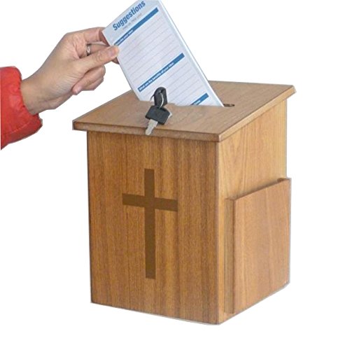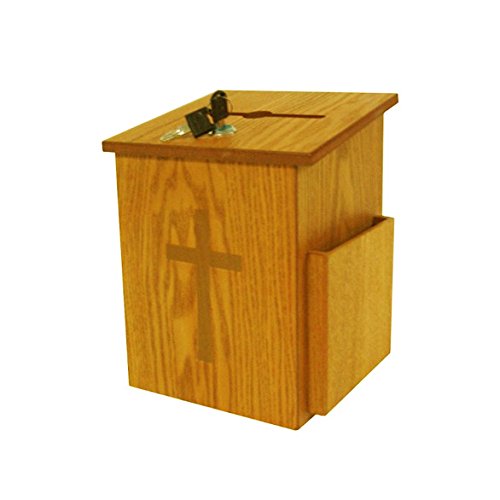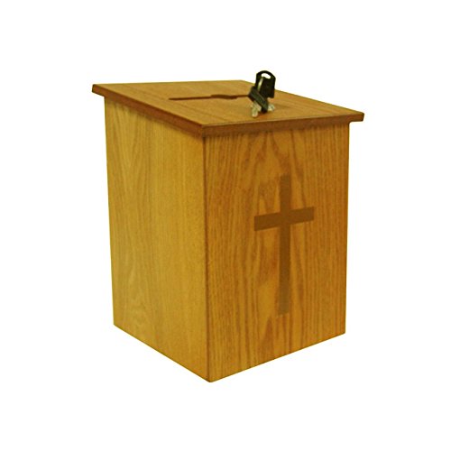 This Church Donation Contribution Box with Cross is ideal for any Christian Church. Gold colored cross decal sticker pre-installed.