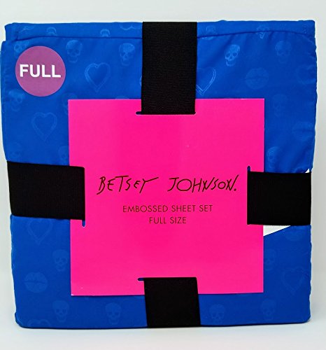 Betsey Johnson Blue Embossed "Kiss My Skulls" Full Sheet Set