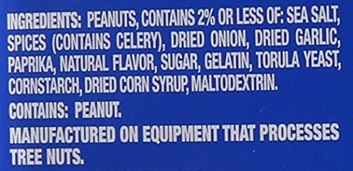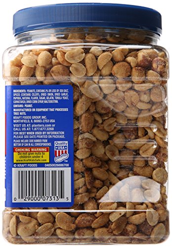 -. Feature : Roasted peanuts / Party size container / Seasoned, dry roasted USA-grown and harvested peanuts