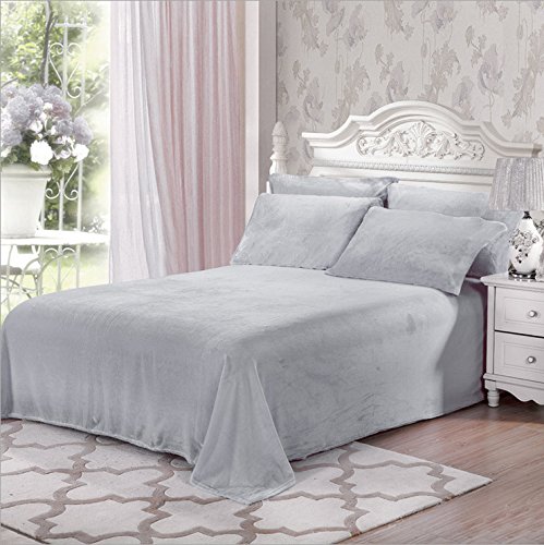 Fasisa Bedding Set - Flannel Fleece Cozy Warm Super Soft Plush Sheet Set - 1 Flat Sheet, 1 Fitted Sheet with 2 Pillowcases (Full, Grey)