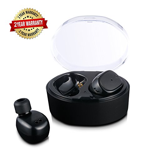 -. Feature : 【TRUE WIRELESS STEREO EARBUDS】Smallest Wireless Stereo Bluetooth Headphones in Couple.Say goodbye to earphones cable annoyance.no more cords stuck to your neck.Stereo/Mono two mode and the latest Bluetooth V4.2 technology provides great continuous stereo surround and noise canceling super auditory carnival. / 【CHARGE ON THE GO】This bluetooth headset come with mini and portable 200mAh battery charging case to charge the earbuds twice while on the go,Enjoy TOTAL 12 hours music play and talking time with ONE earbud(Two earbuds used simultaneously about total 7 hours),35mAh battery for each earbud for 2.5 hours music play or talking time.Never worry about low battery when you are in the out side all day. / 【COMFORT & SECURE & LIGHTWEIGHT】Super lightweight and the stabilizer design according to ear geometry to ensure a secure, comfortable fit for any ear.Custom made silicone tips keep the earphones in place and Anti-sweating while walking, running, and exercising, you will never worry about the ear buds to be falling off. / 【EASY TO PAIR & HANDS-FREE TALKING】Easy to pair with single/dual headphones mode instantly.the lastest bluetooth V4.2 and CVC 6.0 technology ensure smooth and clear voice qulity within 33 feet.Experience 2.5 hours of talking time,Answer calls hands-free in your car or during work with built-in microphone.(Note:Just ONLY ONE headphone are working during telephone talking) / 【100% SATISFACTION OR YOUR MONEY BACK!】We believe that you deserve the best and smallest bluetooth headset! we developed this fantastic wireless earbuds to make you can have the best wireless auditory carnival.that's why we offer Free Lifetime Technical support and 24-month Manufacturer's Warranty and hassle Free Replacement or Money Back in 3 months.Buy this bluetooth earphones at the best P.R.Ice/service available in the market. ADD TO CART NOW!!!
