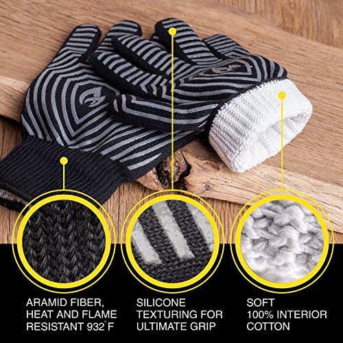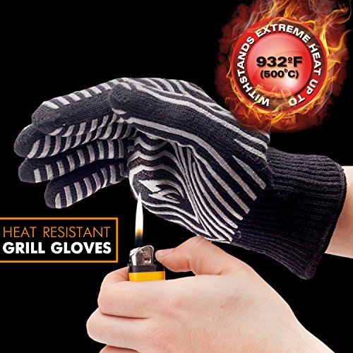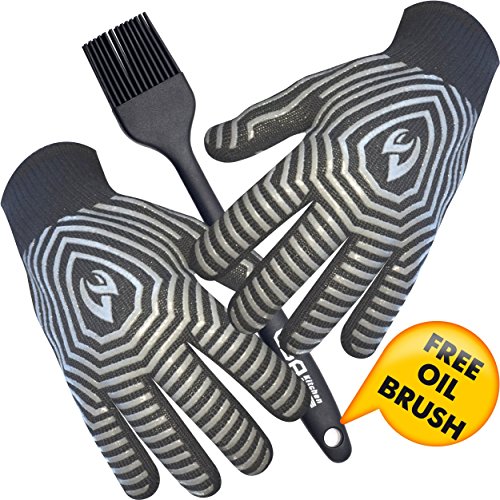 Extreme Heat Resistant BBQ Gloves – Highest Heat Grill Gloves Up To 932°F Resistant - Premium Insulated – Cooking, Frying, Grilling Gloves with Bonus Silicone Oil Brush