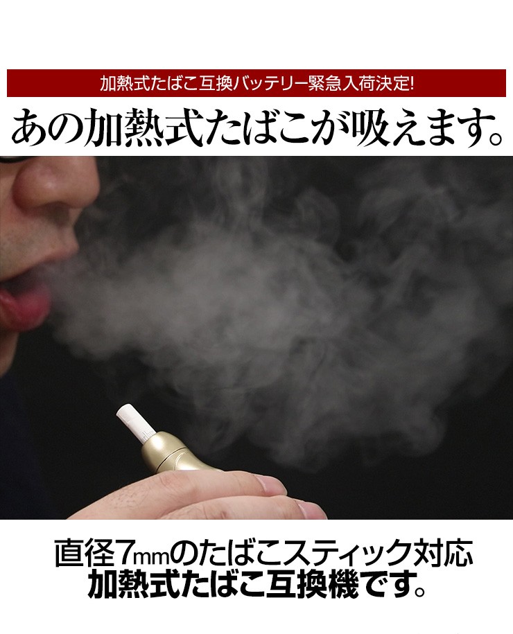 | ご注意事項 | ・吸い終わった直後はホルダーが非常に熱くなっております。やけどの恐れがありますので取り扱いには十分ご注意ください。 ※電子タバコ関連商品に関しましては、20歳以上の方を対象に販売をさせて頂いております。 |