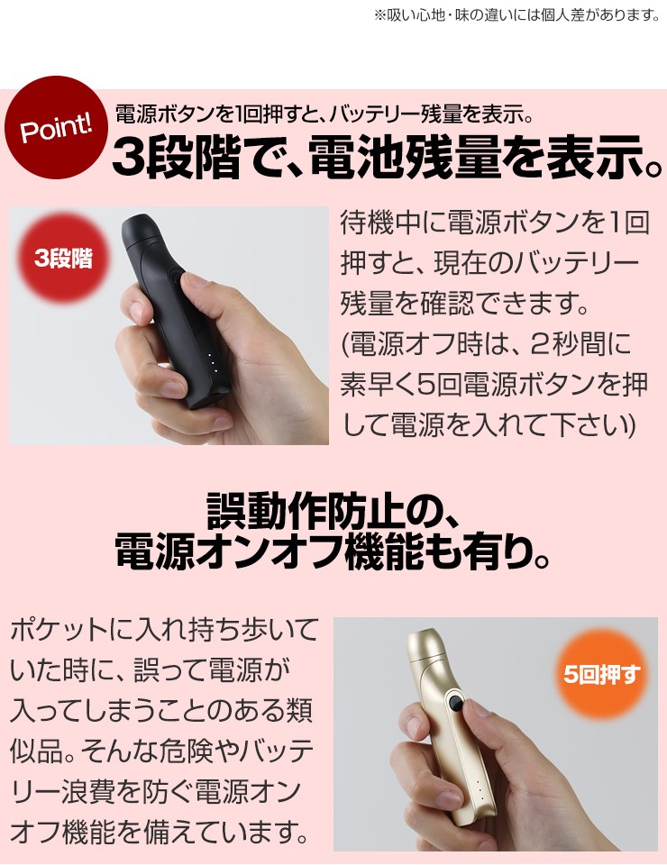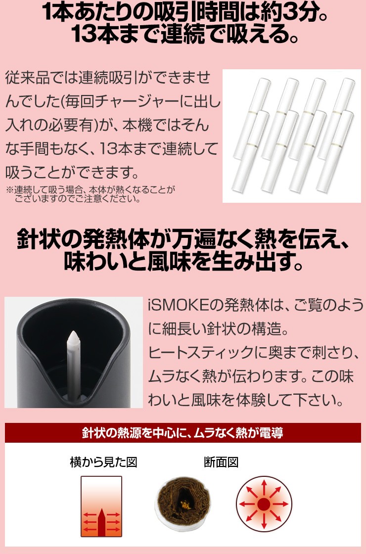 | フル充電で喫煙可能な本数 | 約13本 |